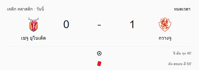 - หมดเวลา: เจจู ยูไนเต็ด 0-1 กวางจู เอฟซี