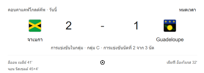 ผลบอลสด คอนแคแคฟโกลด์คัพ ระหว่าง จาเมกา vs กวาเดอลูป วันนี้ 21/6/68 ดูบอลย้อนหลัง คลิปไฮไลท์ ดูบอล คอนแคแคฟโกลด์คัพ