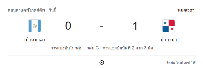- หมดเวลา: ปานามาบุกมาเฉือนกัวเตมาลา 1-0 แบบสนุกสุดมันส์ เจ้าบ้านพยายามสุดกำลังแต่จังหวะจบยังไม่เด็ดขาด
