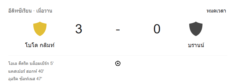 • หมดเวลา: โบโด กลิมท์ 3-0 บรานน์ เก็บชัยชนะในบ้านแบบขาดลอย