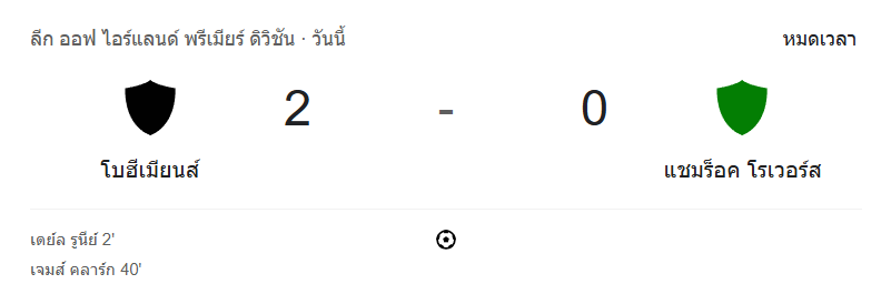 - นาทีที่ 97: จบเกม! โบฮีเมียนส์เอาชนะไป 2-0