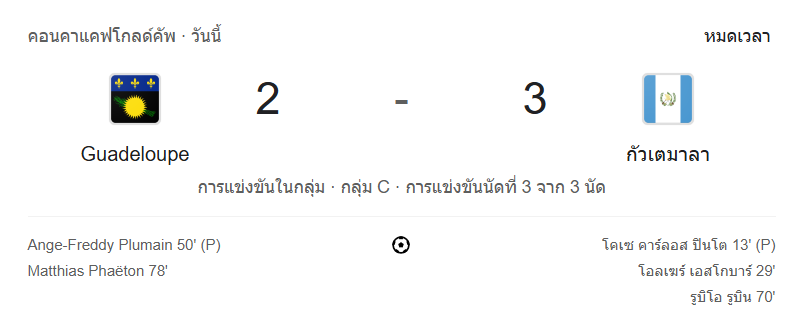 - นาทีที่ 78: GOAL! กวาเดอลูปไม่ยอมแพ้ Matthias Phaëton ยิงมุมแคบสุดสวย ไล่มาเป็น 2-3