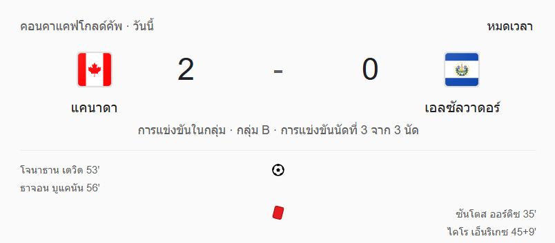 • หมดเวลา:แคนาดา 2-0 เอลซัลวาดอร์