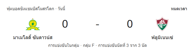 - นาทีที่ 99: จบเกม! มาเมโลดี้ ซันดาวน์ส์ 0-0 ฟลูมิเนนเซ่