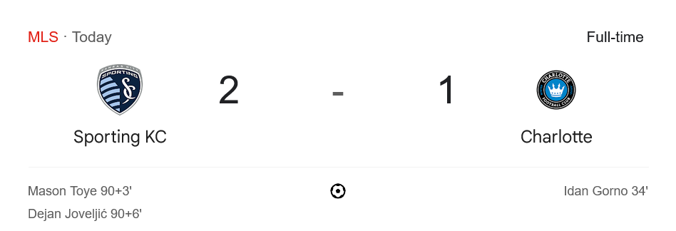 เกมเมเจอร์ลีก ซอกเกอร์ เมื่อคืนที่ผ่านมาเรียกได้ว่าทุกวินาทีคุ้มค่าแฟนบอล เมื่อ สปอร์ติ้ง แคนซัส ซิตี้ เปิดบ้านพลิกนรกช่วงทดเจ็บไล่แซงเอาชนะ ชาร์ลอตต์ เอฟซี ไปแบบเหลือเชื่อ 2-1 ท่ามกลางเสียงเชียร์กระหึ่มสนาม หลังจากตามหลังอยู่เกือบทั้งเกม การแข่งขันนี้กลายเป็นแมตช์ที่แฟนบอลตามลุ้น ผลบอลสด อย่างดุเดือดตั้งแต่นาทีแรกจนสิ้นเสียงนกหวีดสุดท้าย