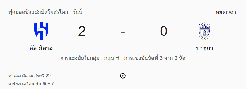 รายงานการแข่งขัน อัล ฮิลาล 1-0 ปาชูก้า