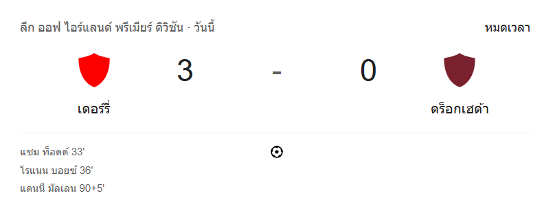 • หมดเวลา: เดอร์รี่ ซิตี้ คว้า 3 แต้มในบ้านชนะดร็อกเฮด้า ยูไนเต็ด 3-0 ด้วยเกมรุกดุดันและแนวรับที่แข็งแกร่ง