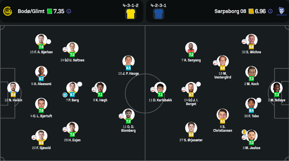 โบโด/กลิมท์ ครองบอลได้มากถึง 66% และผ่านบอลสูงถึง 663 ครั้ง ขณะที่ชาร์ปบอร์กมีเพียง 356 ครั้งเท่านั้น อย่างไรก็ตาม ทีมเยือนกลับยิงตรงกรอบถึง 6 ครั้งจาก 10 โอกาส และเปลี่ยนเป็น 2 ประตูได้สำเร็จ ขณะที่เจ้าบ้านยิงตรงกรอบแค่ 5 จาก 29 หน และทำได้แค่ประตูเดียว นอกจากนี้ชาร์ปบอร์กยังเสียฟาวล์ถึง 10 ครั้งและโดนใบเหลือง 1 ใบ ขณะที่เจ้าบ้านฟาวล์เพียง 5 ครั้งแต่ไม่มีใบใดเลย สะท้อนถึงความดุเดือดในจังหวะป้องกันของทีมเยือน