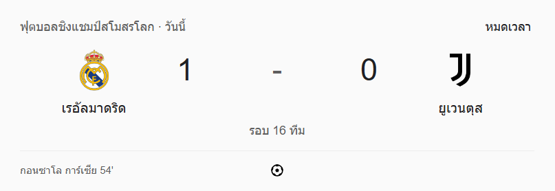 - นาทีที่ 96: จบเกม! เรอัลมาดริด 1-0 ยูเวนตุส ราชันชุดขาวคว้าชัยผ่านเข้ารอบแบบสุดมัน