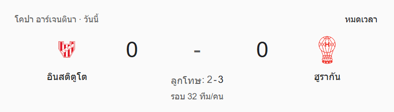 - ครบ 90 นาที: ยังไม่มีฝ่ายใดทำประตู อินสติตูโต 0-0 อูรากัน ต้องตัดสินด้วยการยิงจุดโทษ