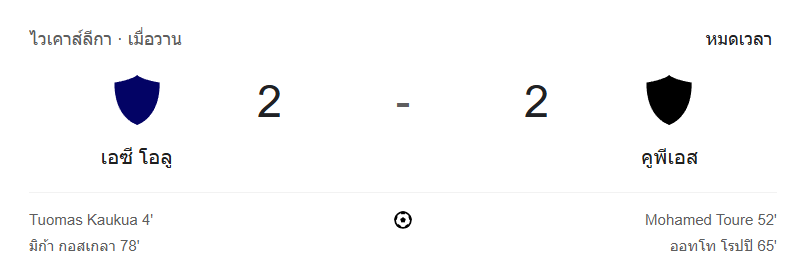 - ทดเจ็บนาทีที่ 90+5: กรรมการเป่าจบเกม! เอซี โอลู เปิดบ้านเสมอ คูพีเอส สุดมัน 2-2 แบ่งกันไปทีมละแต้ม