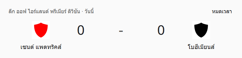 - หมดเวลา: เซนต์ แพตทริคส์ 0-0 โบฮีเมียนส์