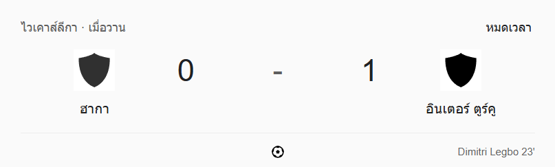 - จบครึ่งแรก: ฮากา 0-1 อินเตอร์ ตูร์คู