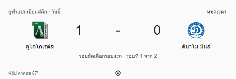 ผลบอลสด ยูฟ่าแชมเปียนส์ลีก รอบคัดเลือก รอบแรก เลกแรก ระหว่าง ลูโดโกเร็ตส์ vs ดินาโม มินส์ค วันนี้ 10/7/68 ดูบอลย้อนหลัง คลิปไฮไลท์ ดูบอล ยูฟ่าแชมเปียนส์ลีก รอบคัดเลือก รอบแรก เลกแรก