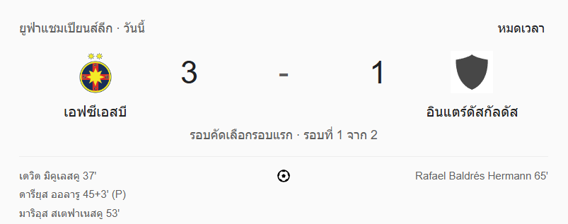 ฟอร์มสุดเดือด! สเตอัว บูคาเรสต์ คว่ำ อินเตอร์ คลับ 3-1 ยูฟ่าแชมเปียนส์ลีก รอบคัดเลือก เลกแรก