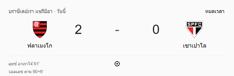 - หมดเวลา: ฟลาเมงโกเปิดบ้านชนะ เซาเปาโล 2-0 คว้าสามแต้มสำคัญในบ้าน!