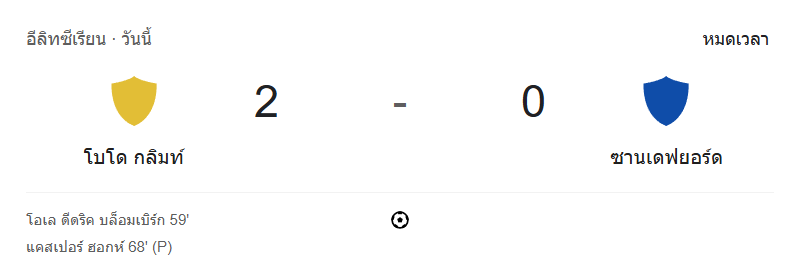 เกมนี้ โบโด กลิมท์ โชว์ฟอร์มเหนือกว่าและคว้าชัยชนะอย่างสมศักดิ์ศรี ท่ามกลางจังหวะ VAR ดราม่าหลายครั้งก่อนจะปลดล็อกได้ในครึ่งหลัง ส่วนซานเดฟยอร์ด แม้จะมีโอกาสบ้างแต่ยังไม่เฉียบคมพอ บ้านกีฬา สรุป ผลบอลสด เกมนี้ชัดเจน เจ้าถิ่นยังร้อนแรงในบ้าน ขยับอันดับลุ้นโควต้าถ้วยยุโรปต่อไป