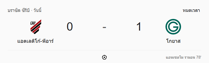 - นาทีที่ 97: จบเกม Athletico Paranaense เปิดบ้านพ่ายให้กับโกยาส 0-1 แบบสุดมันส์
