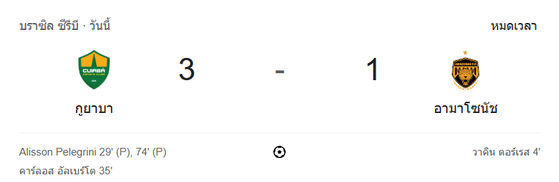 รายงานการแข่งขัน: กูยาบา 3-1 อมาโซนัส (บราซิล ซีรีบี)