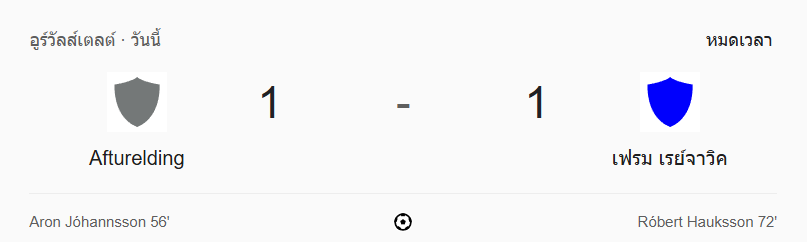 หมดเวลาการแข่งขัน อัฟตูเลดิ้ง เปิดบ้านเสมอกับ เฟรม เรย์จาวิค ไปแบบสุดมันส์ 1-1 แบ่งแต้มกันไปคนละหนึ่ง เรียกเสียงฮือฮาจากแฟนบอลทั้งสนาม ส่วนอันดับในตารางคะแนนพรีเมียร์ลีก ไอซ์แลนด์ ยังต้องลุ้นกันต่อไปทุกแต้มสำคัญ!
