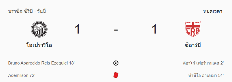 - นาทีที่ 15: Vinícius Mingotti (Operário PR) ยิงมุมแคบแต่ Vitor Caetano (CRB) ยังเซฟได้