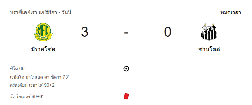 มิราสโซล เปิดบ้านอัด ซานโตส 3-0 ประเดิมชัยสะเทือนบราซีเลย์รู แซรียีอา บ้านกีฬาอัปเดต ผลบอลสด