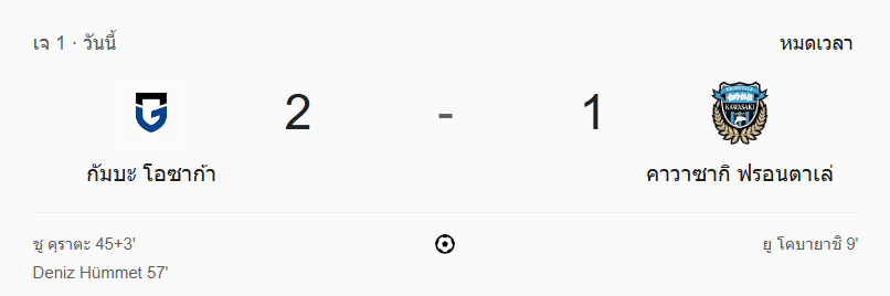ในค่ำคืนที่แฟนบอลรอคอย บ้านกีฬา ขอนำเสนอศึกเจลีก ดิวิชัน 1 ที่ กัมบะ โอซาก้า เปิดบ้านเฉือนชนะ คาวาซากิ ฟรอนตาเล่ ไปแบบสุดมันส์ 2-1 เกมนี้มีประตูและจังหวะสำคัญให้ได้ลุ้นกันตั้งแต่ต้นจนจบ เรียกได้ว่าเป็นเกมที่แฟนบอลติดตาม ผลบอลสด แบบห้ามกระพริบตา