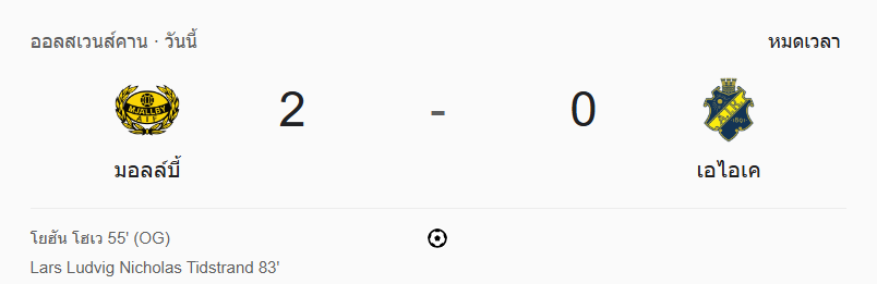 - นาทีที่ 98: จบเกม! มอลล์บี้ 2-0 เอไอเค