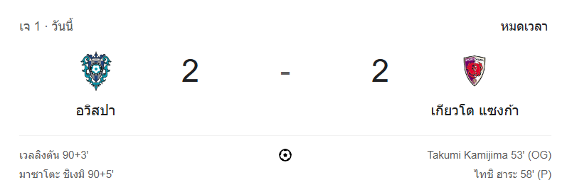 - จบเกม: อวิสปา ฟูกูโอกะ 2-2 เกียวโต แซงก้า