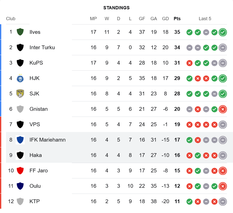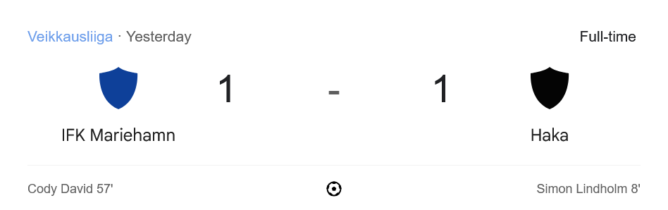 เกม ไวเคาส์ลีกา ฟินแลนด์ เมื่อค่ำวานนี้ บ้านกีฬา พาแฟนบอลเกาะติด ผลบอลสด คู่เดือดระหว่าง ไอเอฟเค มารีฮามน์ เปิดบ้านต้อนรับการมาเยือนของ เอฟซี ฮาก้า ก่อนจะจบแบบแบ่งแต้มด้วยสกอร์ 1-1 ในเกมที่เต็มไปด้วยจังหวะเข้าทำดุดันและใบเหลืองระเนระนาด