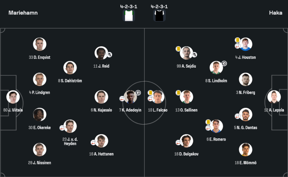• กองกลาง: ดาห์ลสตรอม, คูจาซาโล, ฮุตตูเนน (ออก 81’ คาร์โดโซ่), เอนควิสต์, รี้ด