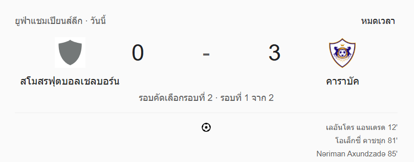 - นาทีที่ 85: GOAL! เนริมาน อัคนุนซาเด้ (คาราบัค) ยิงปิดกล่อง 0-3 หลังเก็บตกจากจังหวะชนเสา