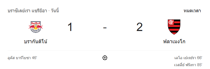 ผลบอลบราซีเลย์รู แซรียีอา บรากันติโน้ เปิดรังโดน ฟลาเมงโก รัวแซง 2-1 – ดราม่าเข้มข้น นาทีท้าย!
