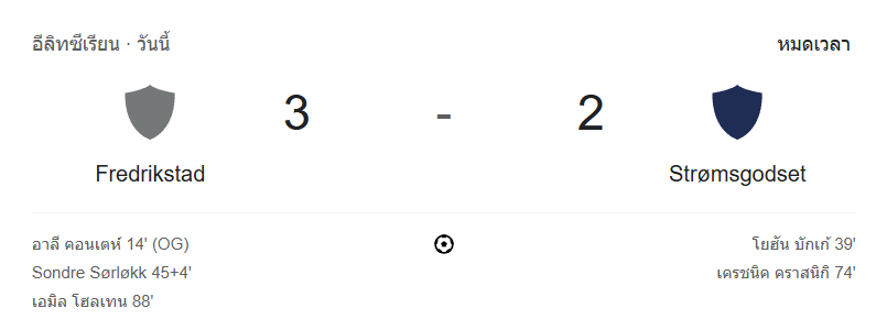 - นาทีที่ 90+3: จบเกม Fredrikstad เปิดบ้านเฉือนชนะ Strømsgodset 3-2 เก็บ 3 แต้มสำคัญในบ้านสุดมันส์!