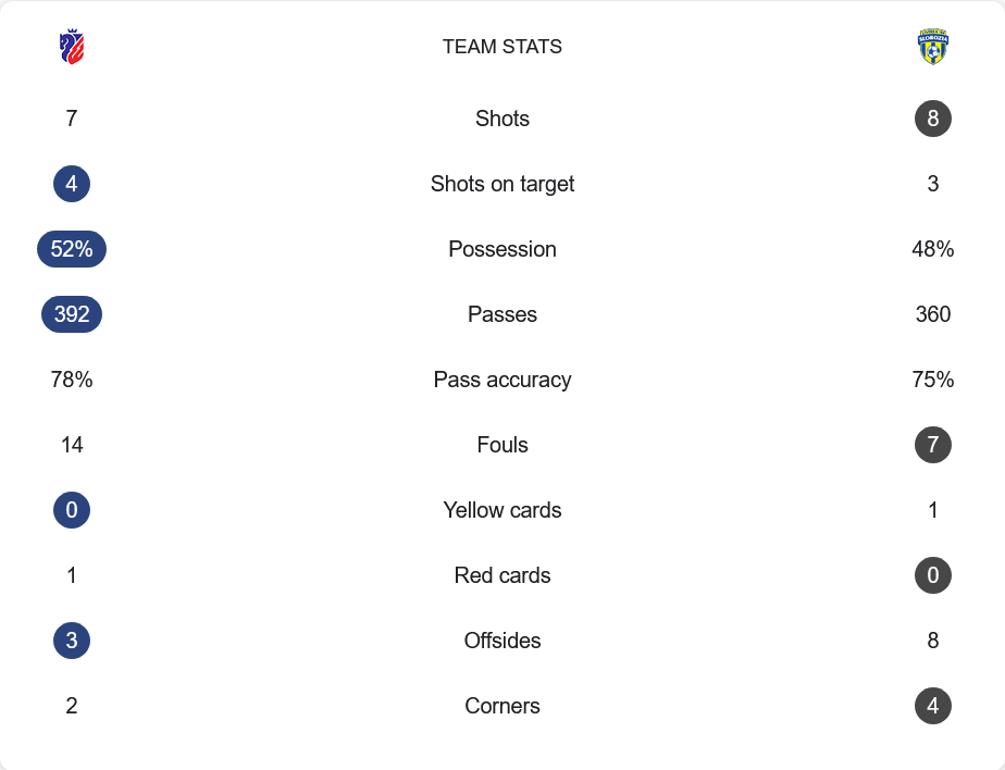 ตลอดทั้งเกม โบโตซานี่ครองบอล 52% เทียบกับโซลโบเซียที่ได้ 48% แต่สิ่งที่แตกต่างคือประสิทธิภาพในการเข้าทำ โดยเจ้าบ้านยิงทั้งหมด 7 ครั้ง เข้ากรอบ 4 ครั้ง และเปลี่ยนเป็น 4 ประตู ขณะที่ทีมเยือนแม้จะยิงมากถึง 8 ครั้ง แต่ตรงกรอบแค่ 3 หน อีกทั้งยังจ่ายบอลพลาดบ่อยครั้ง (ความแม่นยำ 75%) และมีถึง 8 ครั้งที่ล้ำหน้า เทียบกับโบโตซานี่ที่ล้ำหน้าแค่ 3 หน