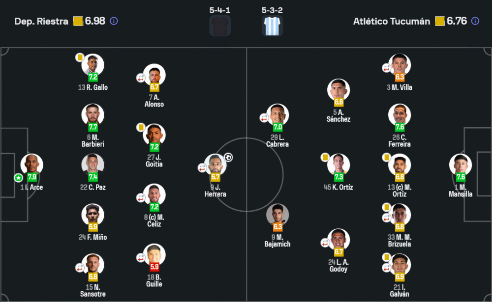 - กองกลาง: ฟาคุนโด้ มิโญ (6.9), ฆวน โกอิเทีย (6.7), บรูโน่ กีย์เย่ (5.9), อลัน อลอนโซ่ (6.7)