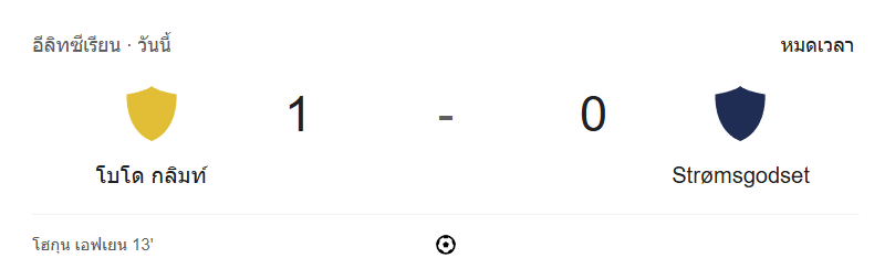 - หมดเวลา: โบโด กลิมท์เปิดบ้านเฉือน Strømsgodset 1-0 เก็บ 3 คะแนนสำคัญได้สำเร็จ