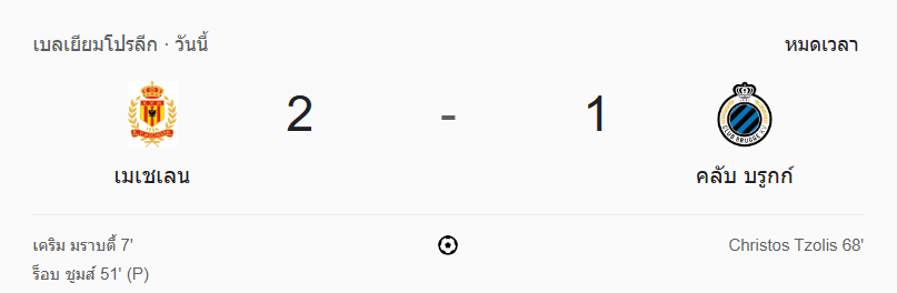 - หมดเวลา: เมเชเลนเฉือนชนะคลับ บรูช 2-1 คว้าสามแต้มในบ้าน!