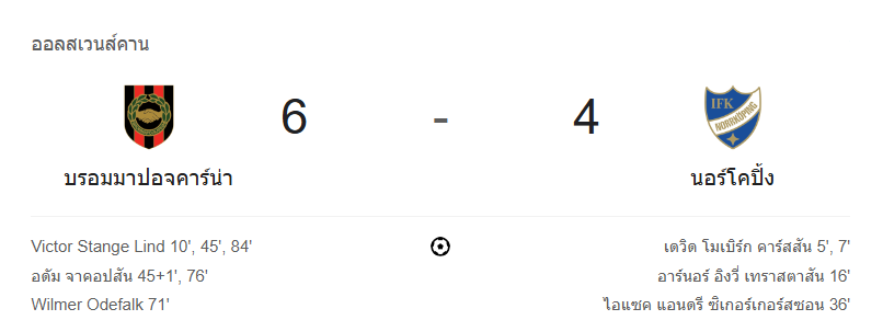 ผลบอลสุดมันส์! บรอมมาปอจคาร์น่า ยิงแหลกดับ นอร์โคปิ้ง 6-4 สงครามประตูแห่งออลสเวนส์คาน