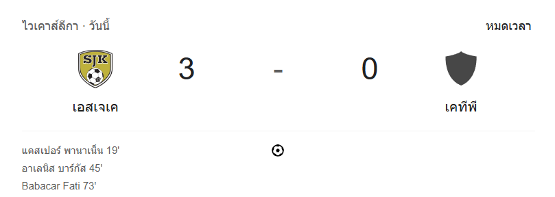 ผลบอลไวเคาส์ลีกา SJK ซานาโยเอน โชว์โหด! เปิดรังถล่ม KTP ค็อตก้า 3-0 สะใจแฟนบอล