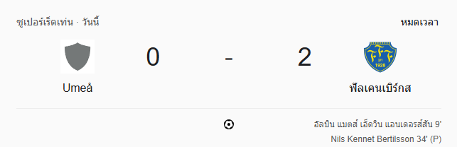 ผลบอลสด สวีเดน ซูเปอร์เร็ตเท่น ระหว่าง ยูเมีย เอฟซี 0-2 ฟัลเค่นเบิร์ก วันนี้ 5/8/68