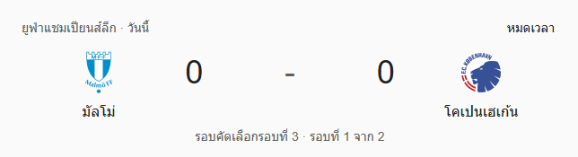 ผลบอลสด ยูฟ่าแชมเปียนส์ลีก ระหว่าง มัลโม่ เอฟเอฟ vs เอฟซี โคเปนเฮเก้น วันนี้ 6/8/68 ดูบอลย้อนหลัง คลิปไฮไลท์ ดูบอล ยูฟ่าแชมเปียนส์ลีก