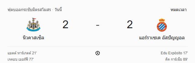 - ทดเวลา 90+1: จบเกม นิวคาสเซิล ยูไนเต็ด 2-2 เอสปันญ่อล