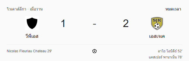 ผลบอลสดไวเคาส์ลีกา วีพีเอสนำก่อนแต่โดนแซง! เอสเจเค ไซนาโจเอน บุกคว่ำ 1-2 ที่เอลีซ่า สตาดิโอน