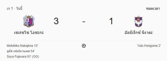 - นาทีที่ 97: จบเกม! เซเรโซ โอซากะ เปิดบ้านชนะ อัลบิเร็กซ์ นิงาตะ 3-1 เก็บสามแต้มได้สำเร็จ