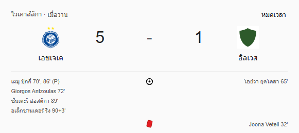 - หมดเวลา: เอชเจเค 5-1 อีลเวส