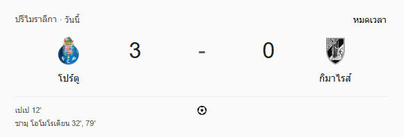 - หมดเวลา: ปอร์โต้ 3-0 กิมาไรส์