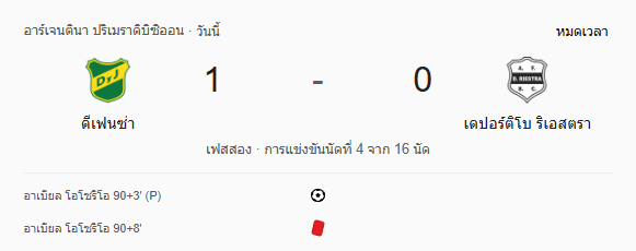 - นาทีที่ 90+3: GOAL! Abiel Osorio ซัดจุดโทษเสียบเสาขวา ดีเฟนซ่านำ 1-0