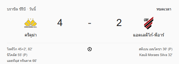 - หมดเวลา: คริซิอูมา 4-2 แอตเลติโก้ พาราเนนเซ่