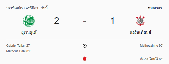 ผลบอลสด กังเปโอนาตู บราซีเลย์รู แซรียีอา ระหว่าง ยูเวนตูเด้ 2-1 สปอร์ตคลับ คอรินเทียนส์ เปาลิสตา วันนี้ 12/8/68